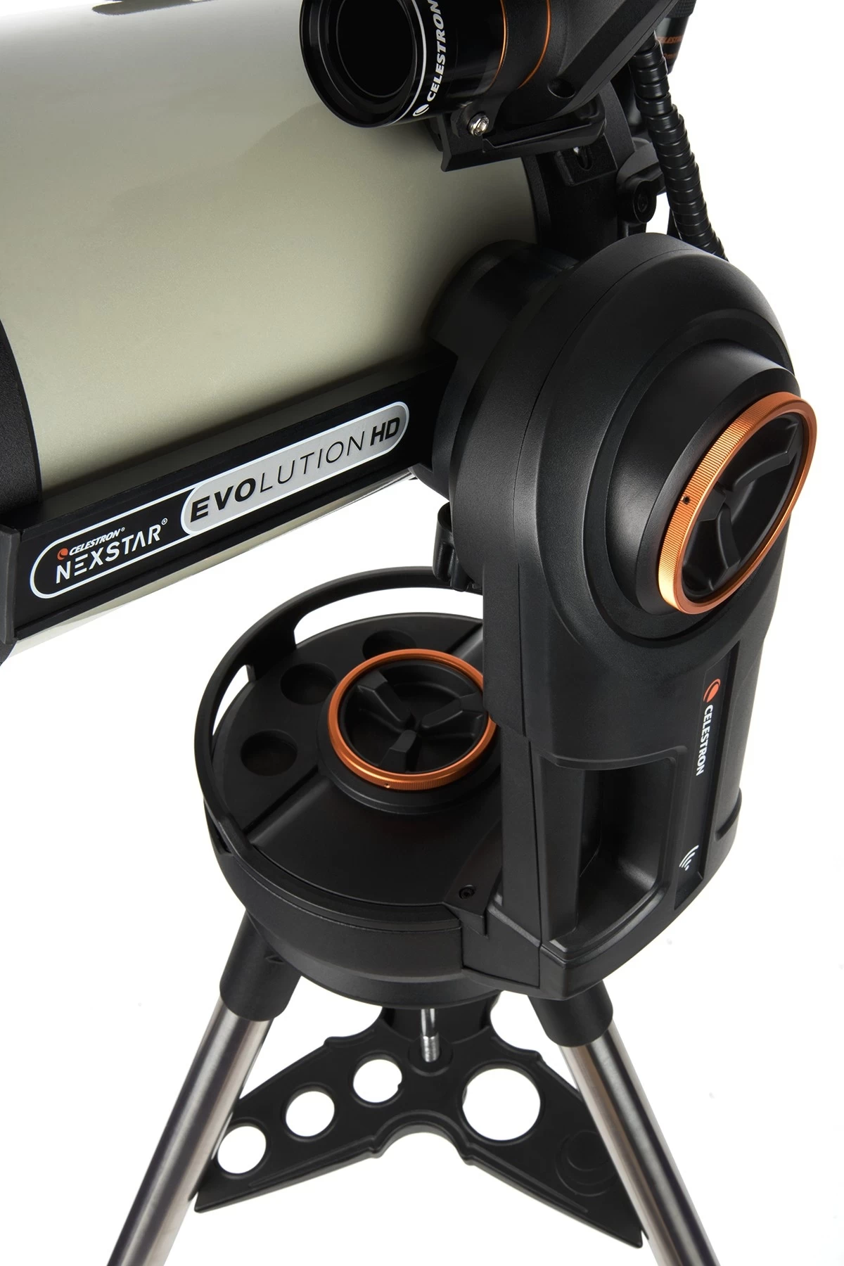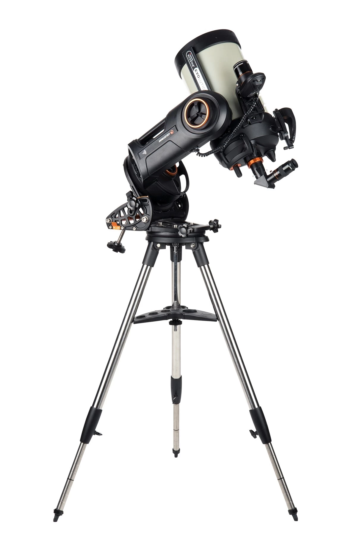 Igen jelentős fejlesztés, hogy a cserélhető elemek vagy külső áramforrás helyett, a mérnökök egy beépített tápegység mellett döntöttek. Az újratölthető lítium-ion akkumlátornak köszönhetően akár 10 órán keresztül is észlelhetünk egyhuzamban. Ráadásul alacsony feltöltöttségnél automatikusan energiatakarékos üzemmódba kapcsol a rendszer. Az Evolution sorozat további előnyei között említhetjük a manuális kuplungokat, amelyek a tubus kézi mozgatását teszik lehetővé, illetve a két okulártálcát, amelyeken összesen 7 okulár számára van hely. A cég saját fejlesztésű StarBright XLT bevonata jelentősen növeli a távcső fényhasznosító képességét, és a látott kép kontrasztját is javítja.