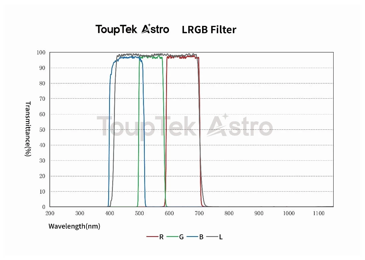A ToupTek L-RGB szűrőket speciális, magas tisztaságú és termális stabilitású kvarc alapú optikai üvegből gyártják. A felületkezelés IAD technológiával készül, mely a hagyományos vákumgőzöléshez képest egyenletesebb, korróziónak jobban ellenállóbb minőséget képvisel. Mindezen jellemzők garantálják a kiváló képminőséget és a hosszú élettartamot.